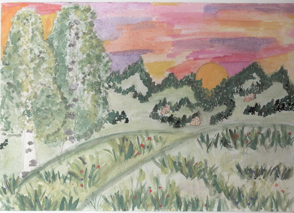 - Так же понравился рисунок Алёны «Закат солнца над Байкалом».