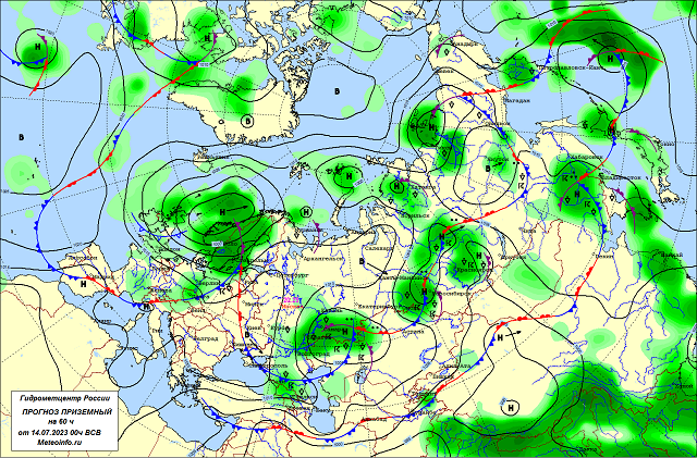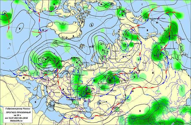 Ночью 13 июля на юге Тюменской области очень сильный дождь с грозой вылил до 57 мм влаги, в Курганской области, центральных и южных районах Красноярского края прошел сильный грозовой дождь (выпало 19 мм и 42 мм осадков соответственно). 13 июля сильный дождь с грозой отмечался в Кемеровской (до 19 мм осадков) и Новосибирской (до 22 мм областях) областях. 13 - ночью 14 июля сильный грозовой дождь наблюдался в Ханты-Мансийском автономном округе и Томской области (36-44 мм осадков). При грозах усиливался ветер до 20-22 м/с в Омской области, в Красноярском крае, Хакасии.