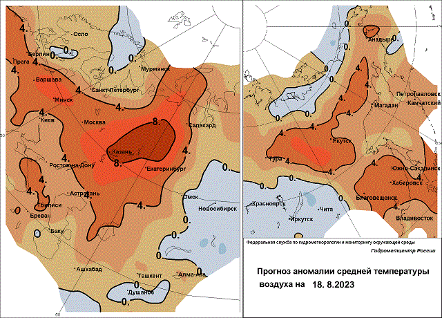 А вот на севере Европейской территории 18 августа самая высокая температура будет на юге Коми, до 29°, а затем и здесь существенно похолодает.