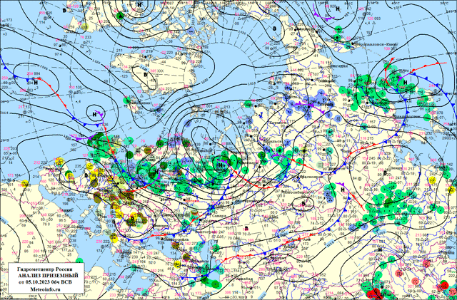 Глубокий циклон через Японские острова перемещается в восточном направлении. 6-7 октября на юге Хабаровского края, севере Приморья, а также в южных районах Сахалина и Курильской гряды продолжатся дожди, местами сильные, местами ветер с порывами 17-22 м/с, на побережье до 22-27 м/с.