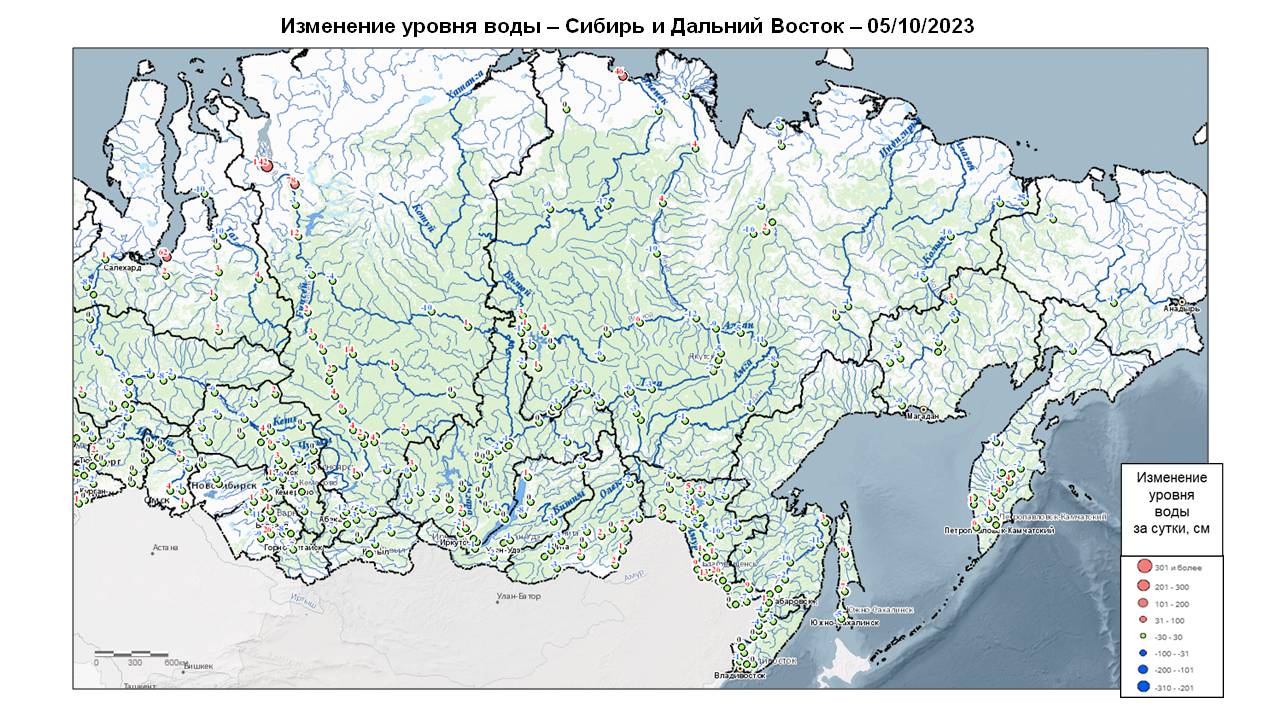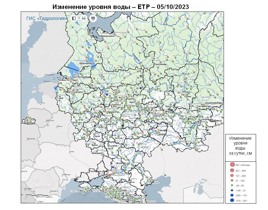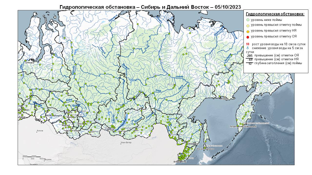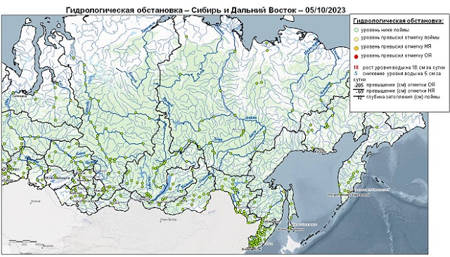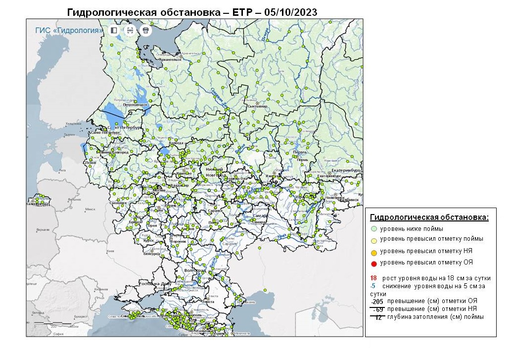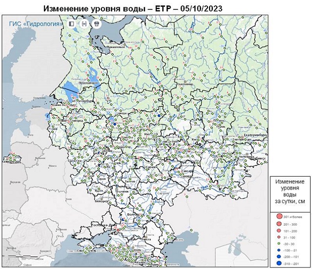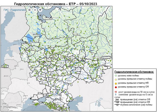 Неблагоприятные и опасные явления на реках, озерах и водохранилищах Российской Федерации по состоянию на 5 октября 2023 г.