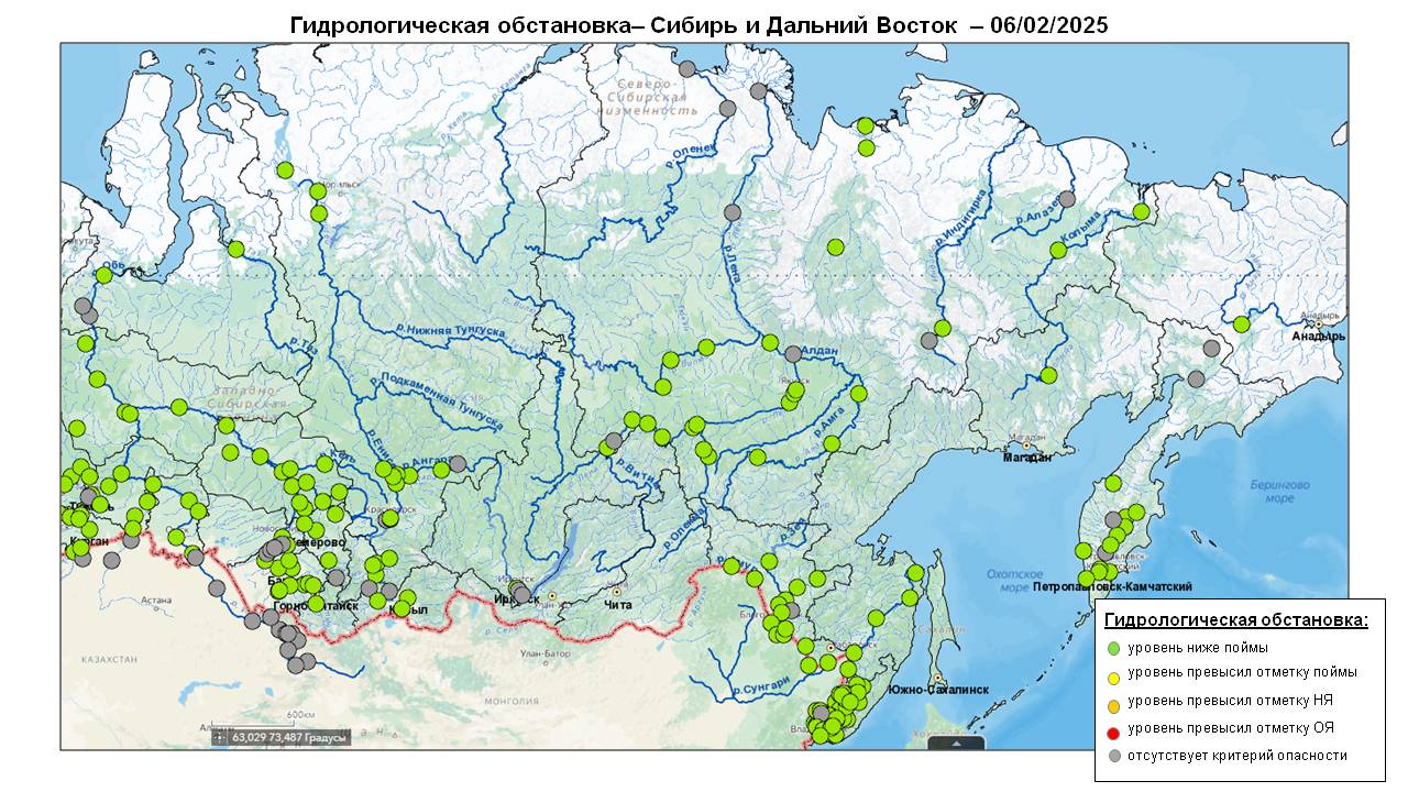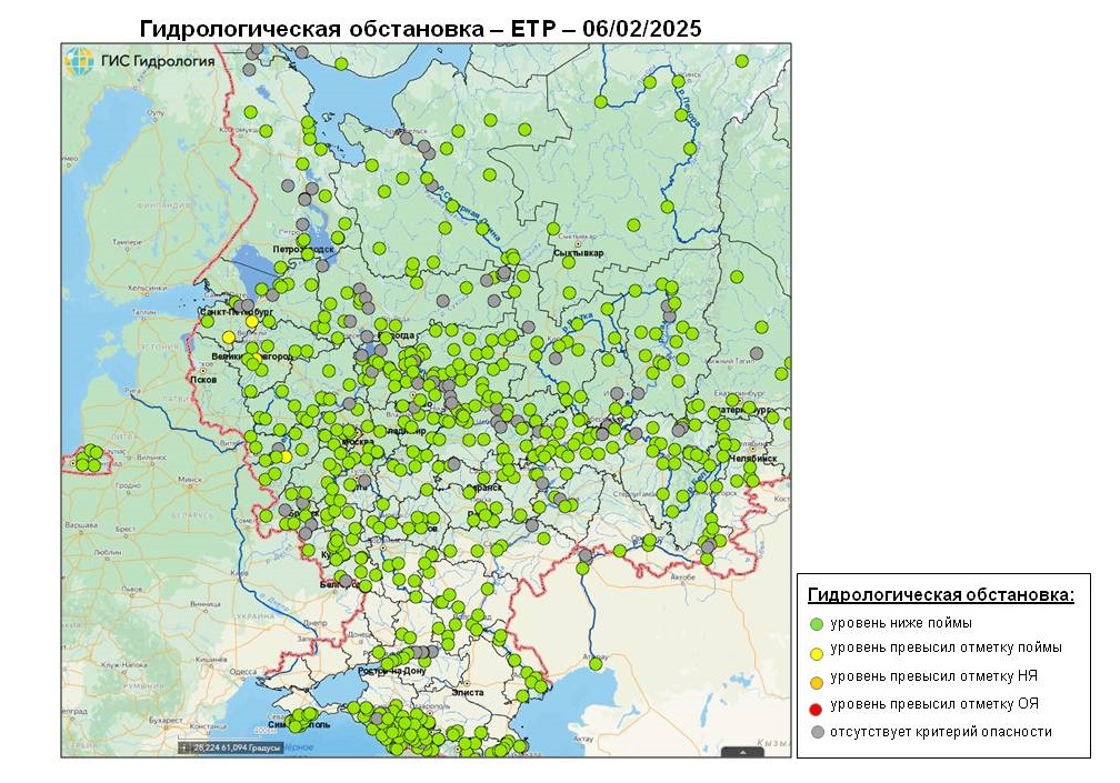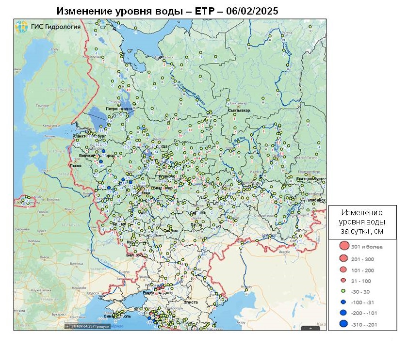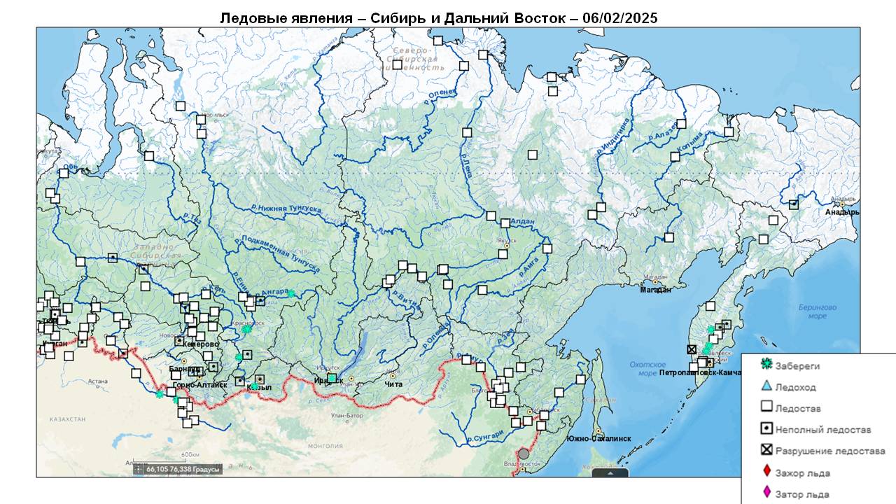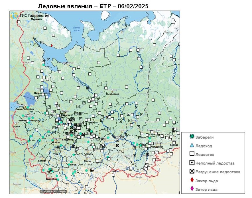 Неблагоприятные и опасные явления на реках, озерах и водохранилищах Российской Федерации по состоянию на 6 февраля 2025 г.