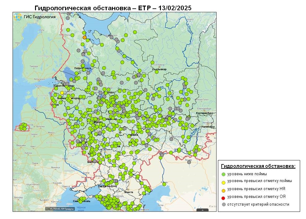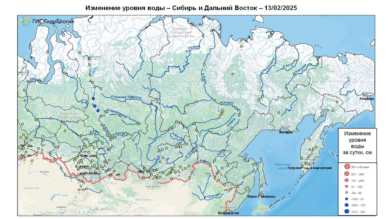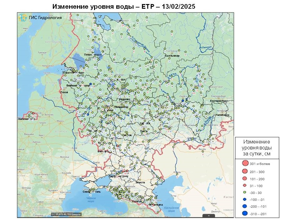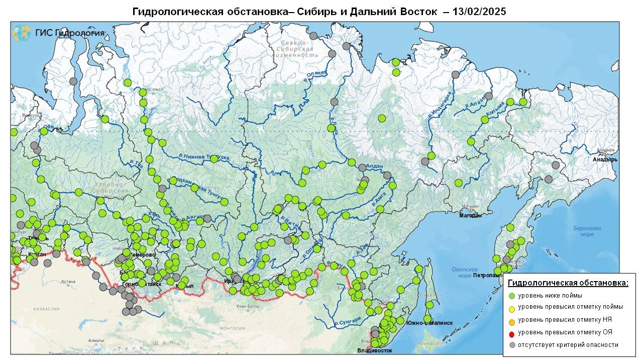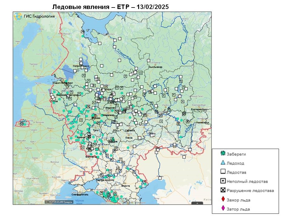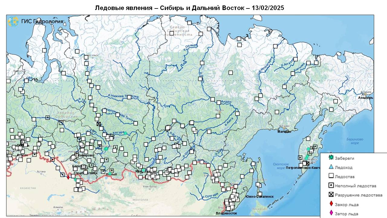 Неблагоприятные и опасные явления на реках, озерах и водохранилищах Российской Федерации по состоянию на 13 февраля 2025 г.