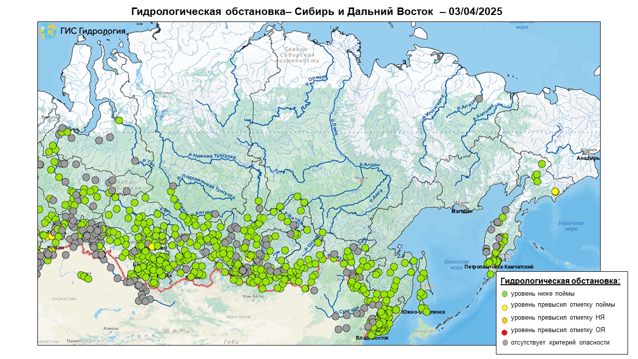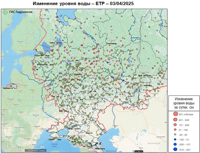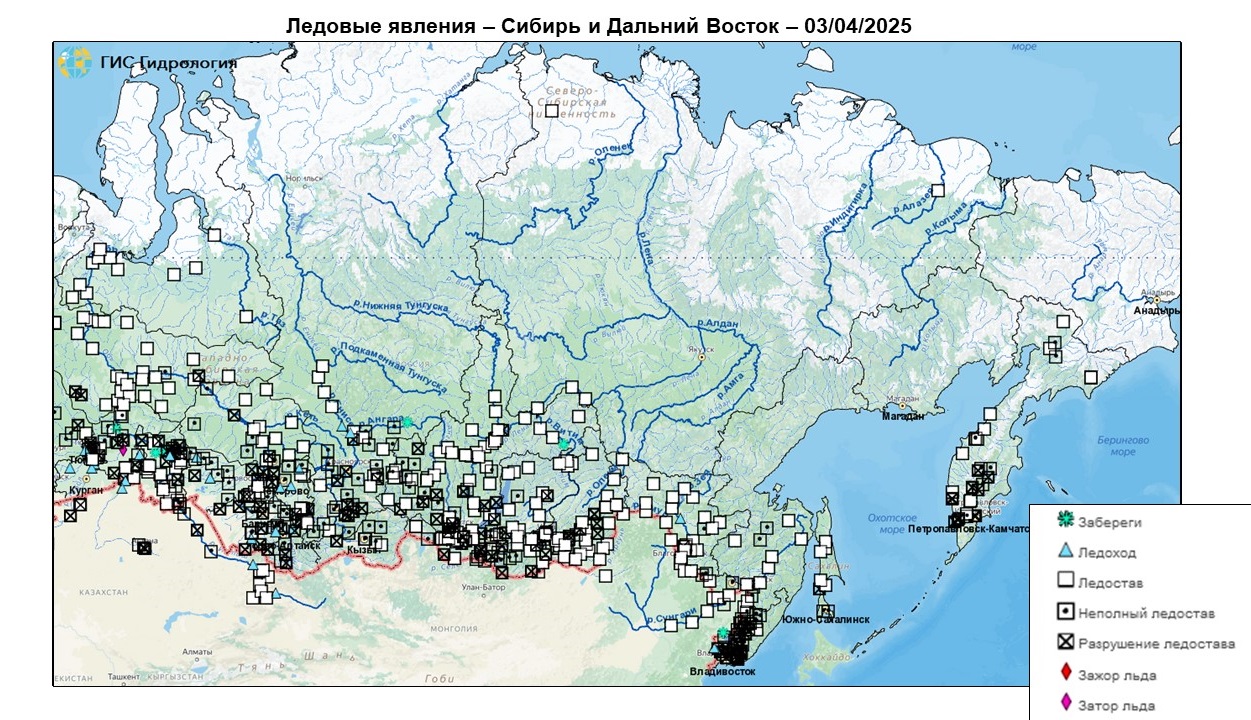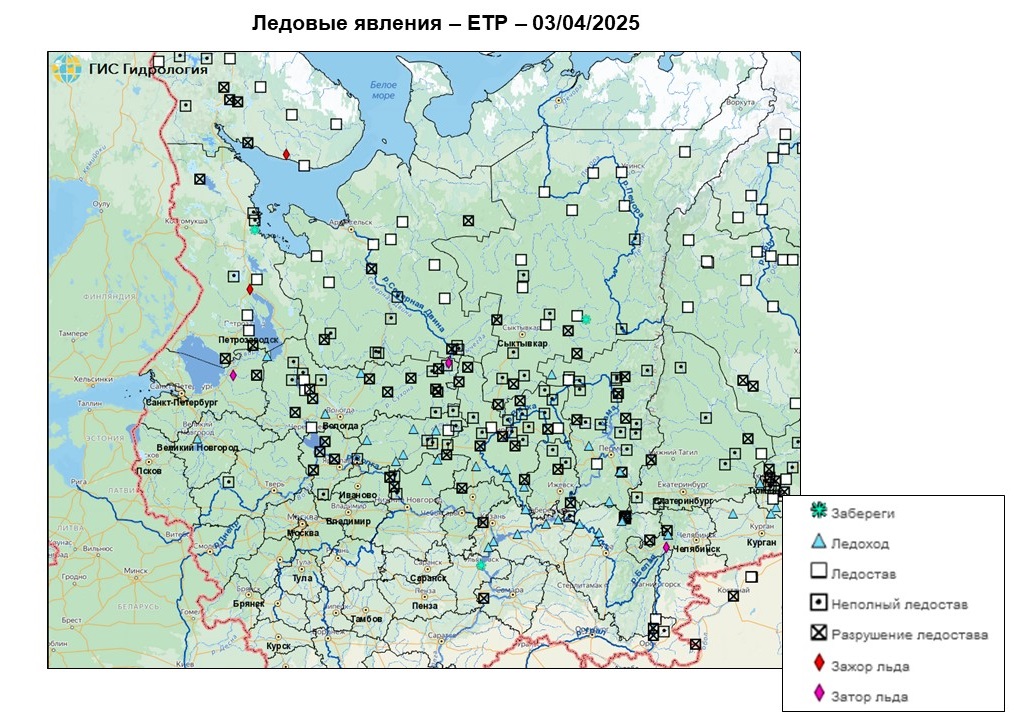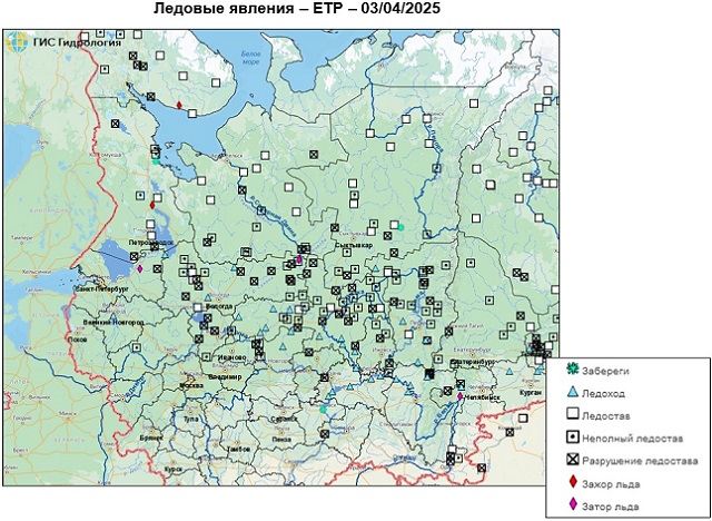 Неблагоприятные и опасные явления на реках, озерах и водохранилищах Российской Федерации по состоянию на 3 апреля 2025 г.