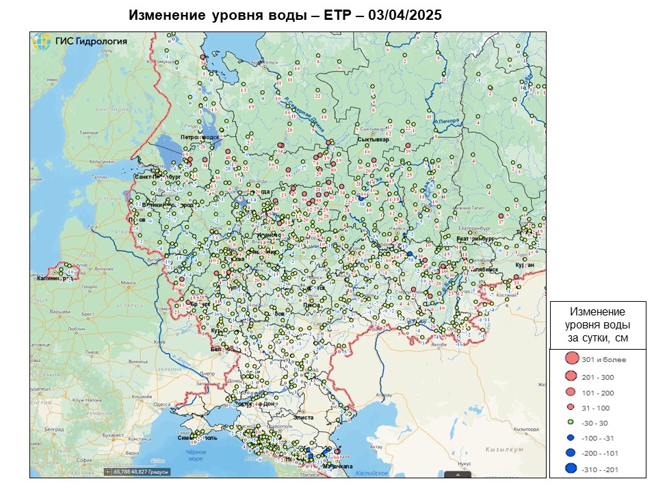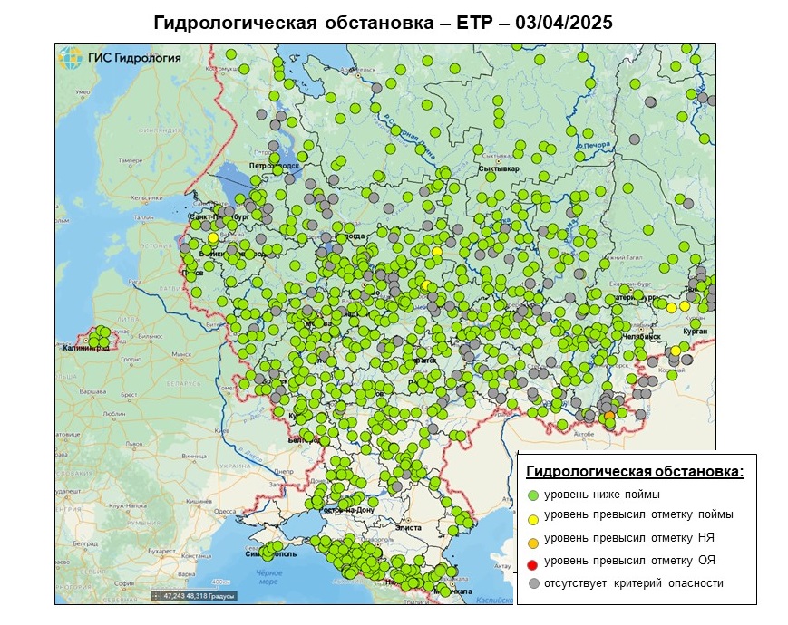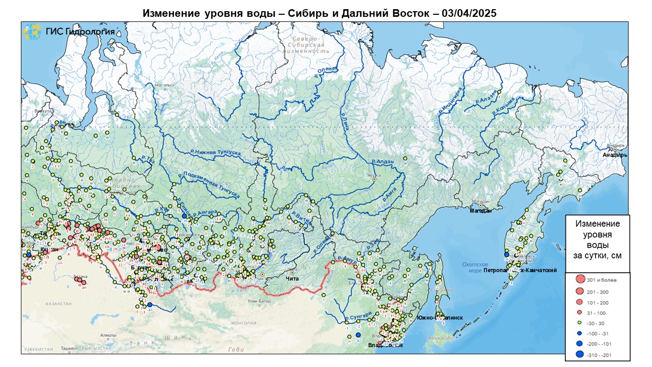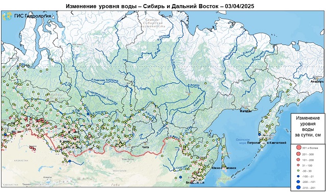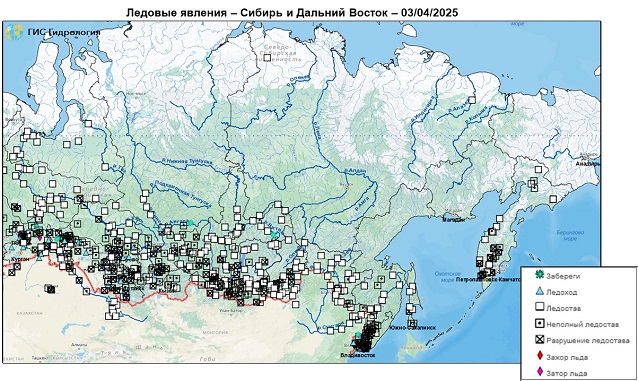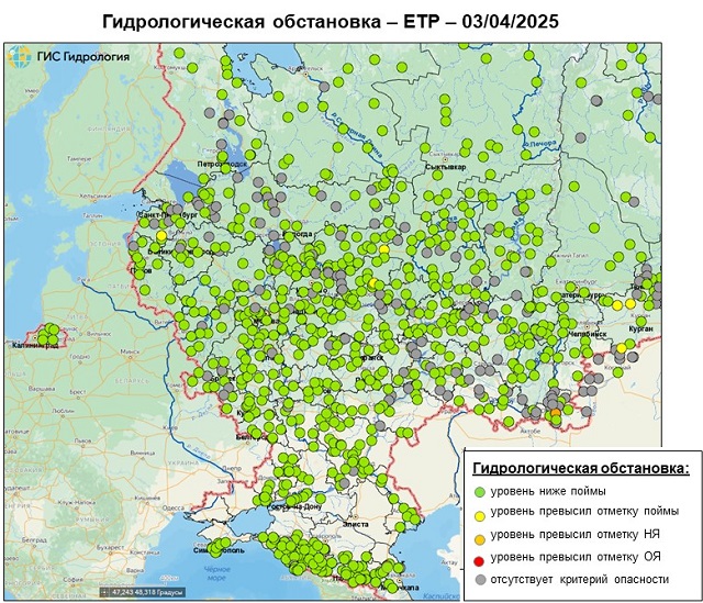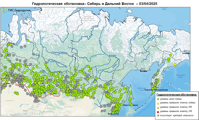 Неблагоприятные и опасные явления на реках, озерах и водохранилищах Российской Федерации по состоянию на 3 апреля 2025 г.
