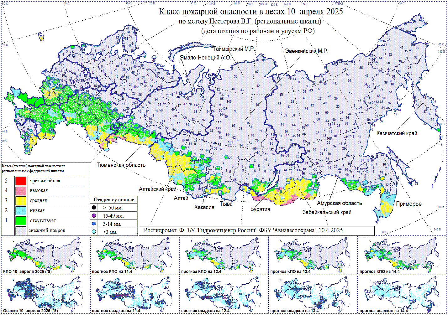 12 апреля. В Ставропольском крае, Карачаево-Черкесии сильные осадки (дождь, мокрый снег, снег). В Курганской области ночью сильные осадки (преимущественно дождь). В Эвенкийском муниципальном районе Красноярского края ночью на юге сильный снег. На юге Амурской области сильные осадки (дождь, мокрый снег).