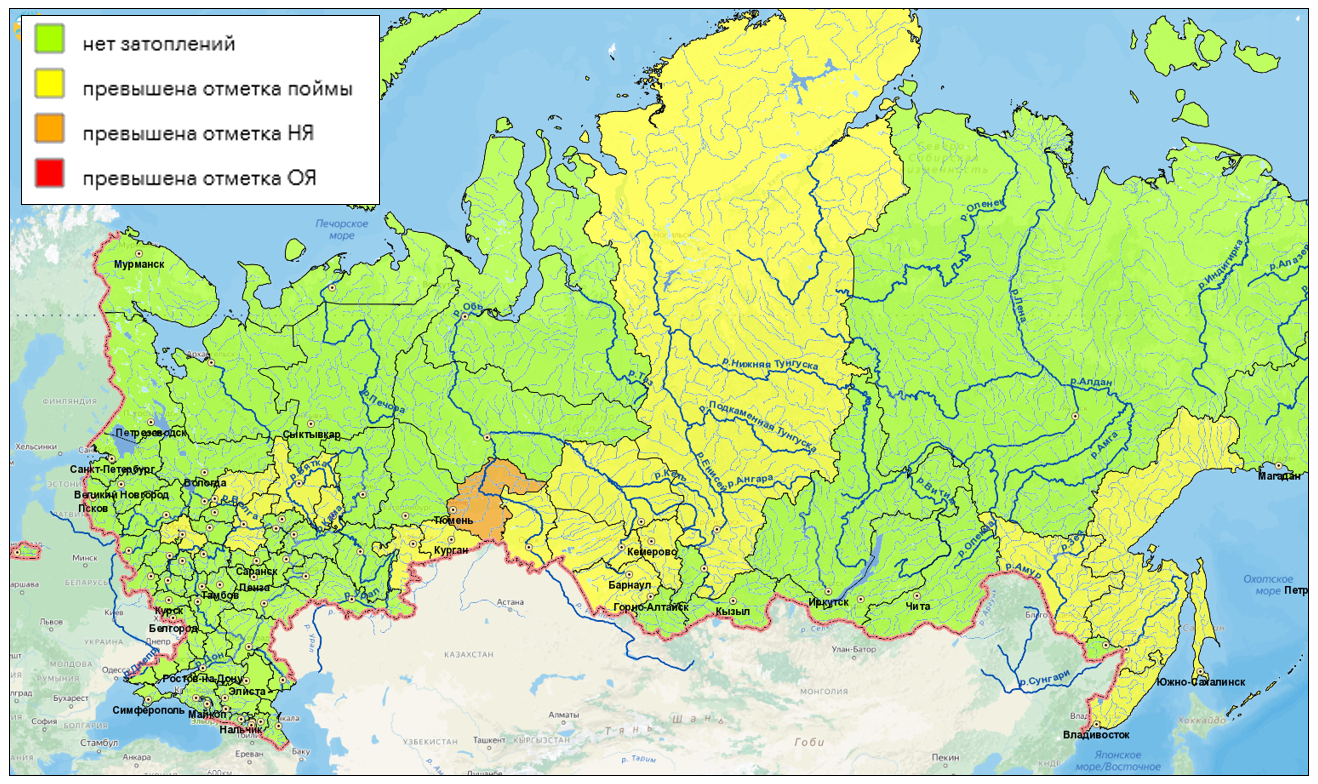 Опасные и неблагоприятные явления на реках, озерах и водохранилищах Российской Федерации по состоянию на 9-00 (МСК) 15 апреля 2025 г.