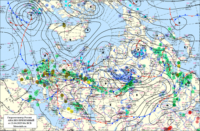 23 апреля. В Ямало-Ненецком автономном округе осадки (снег, мокрый снег), метель, ветер 17-22 м/с. В Томской области дождь, мокрый снег, ветер 17-22 м/с. На побережье Магаданской области ветер 17-22 м/с. На севере Курильской гряды осадки (мокрый снег, дождь), ветер 20-25 м/с.