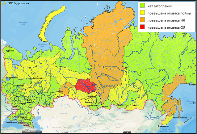 Опасные и неблагоприятные явления на реках, озерах и водохранилищах Российской Федерации по состоянию на 9-00 (МСК) 22 апреля 2025 г.