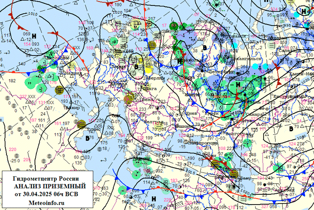 В среду 30 апреля, облачно с прояснениями, местами небольшой дождь. Tемпература в Москве 11...13°, по области 10...15°. Ветер северо-западный, северный 7-12 м/с.