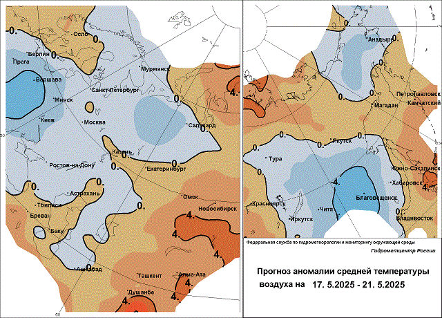 17-18 мая преобладающая температура в Южном округе днем составит +18...+24, местами до +27 градусов, на черноморском побережье 18 мая +15...+20 градусов. На Северном Кавказе примерно такая же температурная обстановка: днем воздух прогреется до +18...+23, местами до +26 градусов, в горных районах +12...+17, местами до +20 градусов, в Ингушетии, Чеченской республике и Дагестане до +24. 19 мая станет прохладнее на 1-3 градуса в Южном округе, на 3-8 градусов - на Северном Кавказе.