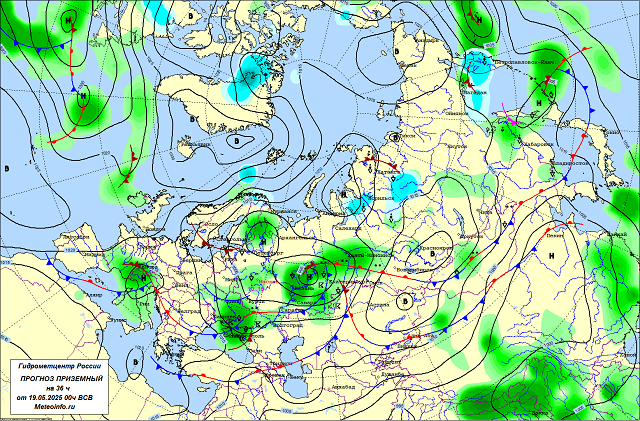 На большей части Европейской территории России (ЕТР), под влиянием атлантических циклонов и атмосферных фронтов, ожидаются дожди, на крайнем севере с мокрым снегом, в центральных областях и на юге местами сильные дожди с грозами и усилением ветра 17-22 м/с, на юге ЕТР с градом и ветром до 25 м/с. На севере Урала и в северной половине Сибири в начале периода пройдут осадки преимущественно в виде мокрого снега, в отдельных районах гололедные явления, местами ветер с порывами до 17-22 м/с. На юге Дальнего Востока циклоны и атмосферные фронты вызовут осадки, в Хабаровском крае, Сахалинской области и на Камчатке местами сильные, в отдельных районах прогремят грозы, на побережье ветер усилится до 18-23 м/с...