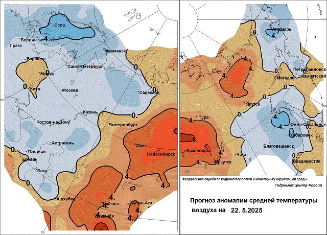 20-22 мая. В Челябинской области сильный дождь, 20 мая ветер 15-20 м/с. В Иркутской области заморозки (температура до -5°).