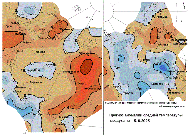 1 - ночью 2 июня северный циклон доставил сильные осадки в виде снега и дождя в Якутию, зарегистрировано до 18 мм осадков. Завтра 3 июня в центре, на северо-востоке, юго-западе, нижней Лене пройдут небольшие и умеренные дожди, ночью на севере с мокрым снегом. На арктическом побережье усилится ветер до 15-20 м/с. В ночные часы на юге республики намечаются заморозки до -4 градусов, днём воздух прогреется до +14…+19, в восточных регионах до +18…+23 градусов, на западе лишь до +10…+15 градусов. 4-5 июня на большей части Якутии дождливо, на севере, северо-западе дожди пройдут с мокрым снегом, 5 июня на востоке прогремят грозы. Несмотря на ненастье, погода станет более теплой: днём +17…+22, на востоке +20…+25 градусов, на западе +12…+17, на севере +3…+8 градусов.