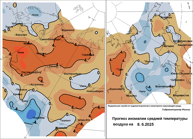 6-8 июня в Красноярском крае от Таймыра до юга, также в Хакасии и Тыве будут идти кратковременные дожди с грозами. Сильный грозовой дождь планируется завтра в Туруханском районе, в субботу сильный дождь с грозой и градом будет лить в южных районах Красноярского края, в воскресенье на центральные районы края обрушатся сильные осадки в виде дождя. Ветер при грозах усилится до 13-20 м/с. В Эвенкии и Туруханском районе, также в центральных районах Красноярского края к воскресенью станет прохладнее. В Эвенкии температура воздуха понизится от +22…+27 градусов 6 июня до +20…+25, местами +10…+15 градусов 8 июня; в Туруханском районе - от +23…+28 до +15…+20 градусов; в центральных районах Красноярского края – от +27…+32 градусов до +20…+25, местами +13…+18 градусов. 6 и 8 июня в южных районах края и Тыве сохранятся +27…+32 градуса, в Хакасии +25…+30 градусов. 7 июня жара немного спадет до +23…+28, местами до 15…+20 градусов.