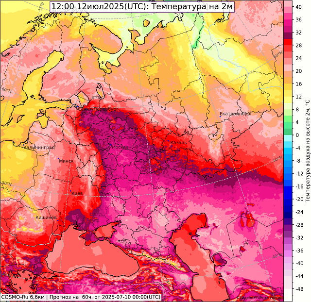 12 июля. Переменная облачность. Ночью без осадков, температура в Москве 20...22° (в центре города 24...26°), по области 17...22°. Днем местами кратковременный дождь, сильная жара, температура в Москве 33...35°, по области 30...35°. Ветер юго-восточный 5-10 м/с.