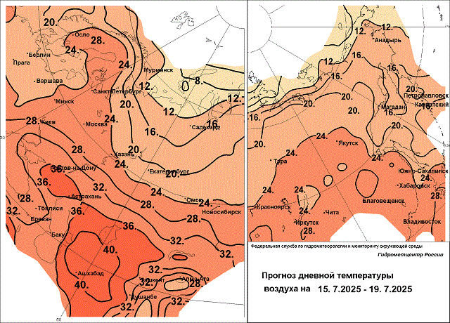 В регионах юго-западной Сибири сильные грозовые дожди пройдут 14 июля в Новосибирской области, 14-16 июля – в Томской области, 14 - 17 июля сильные дожди, ливни, грозы, град и шквалистый ветер до 18 м/с накроют Кемеровскую область. Наиболее прохладным днём станет вторник 15 июля, когда воздух прогреется до +16…+21 градусов в Кемеровской области, до +19…+25 градусов в Новосибирской и Томской областях, до 21…+27 градусов на Алтае. Затем будет становиться теплее: 17 июля в Кемеровской области и Республике Алтай столбики термометров поднимутся до +25...+30 градусов, в Алтайском крае - до +33 градусов, в Томской области наоборот температура воздуха понизится на пару градусов до +18...+23.