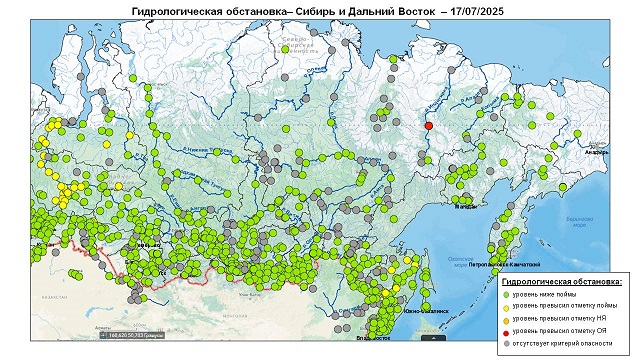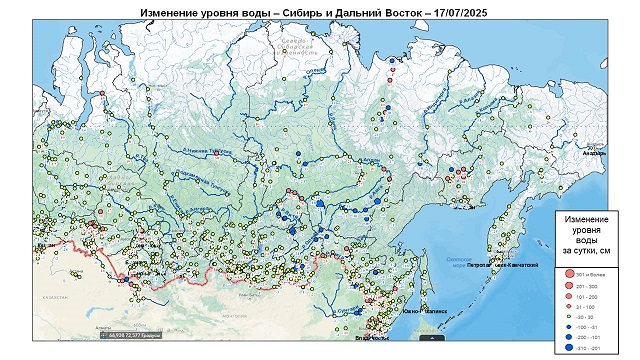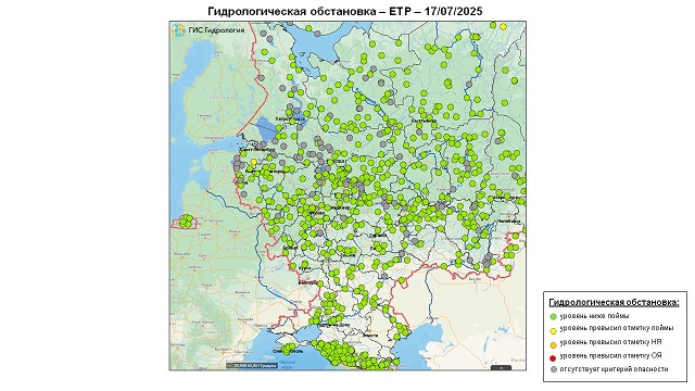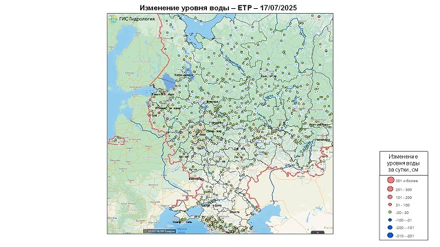 Опасные и неблагоприятные явления на реках, озерах и водохранилищах Российской Федерации на 9 ч мск 17 июля 2025 г.