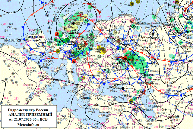 Количество осадков днем 20 и ночью 21 июля 2025 г.