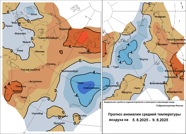 Однако, несмотря на интенсивные осадки, экстремальная жара не собирается покидать регион. Фон максимальной температуры в предстоящие дни 5-7 августа будет выше нормы на 2-5 градусов в Южном округе, на 4-6 градусов – в Северо-Кавказском, в Чеченской Республике аномалия достигнет +9 градусов.