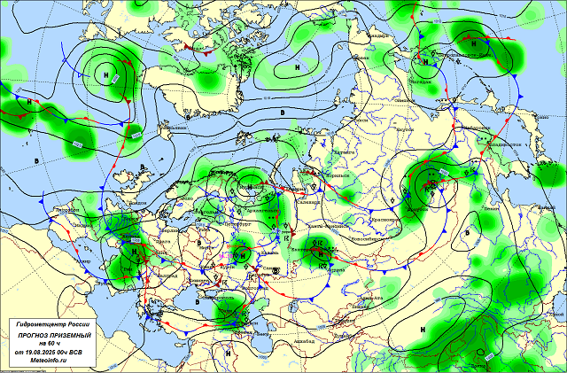 В прошедшие сутки 18 - ночью 19 августа сильные грозовые дожди, обусловленные смещением атмосферных фронтов, отмечались в Амурской области (до 22 мм осадков) и Приморском крае (до 23 мм). Под влиянием многоцентровой депрессии сильный дождь вылил до 48 мм осадков на Камчатский край и до 80 мм на Магаданскую область. Ночью 19 августа в Забайкальском крае очень сильный дождь оставил до 76 мм осадков, за 2 часа выпало до 69 мм влаги в с. Нерчинский завод.