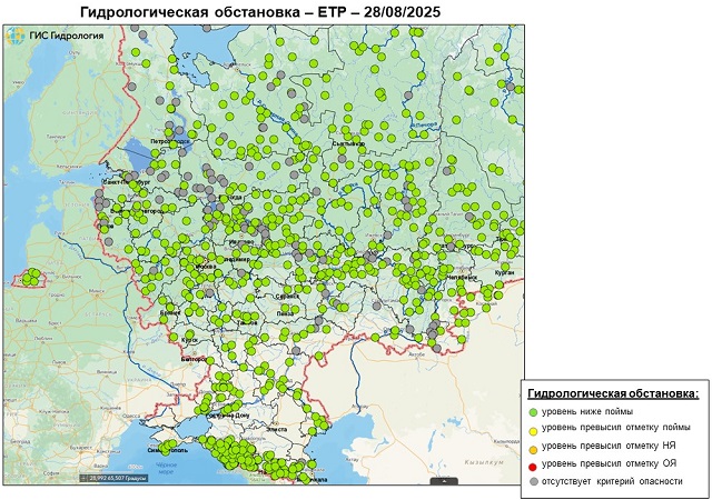 28 августа – 1 сентября на р. Большая Уссурка у п. Вагутон и г. Дальнереченск, р. Малиновка у с. Ракитное и с. Веденка возможно достижение уровнем воды отметки неблагоприятного гидрологического явления; 27-31 августа на реках бассейна Японского моря и р. Уссури (Приморский край) существует угроза подтопления пониженных территорий, хозяйственных объектов, участков дорог, сельхозугодий дождевым, склоновым и русловым стоком.