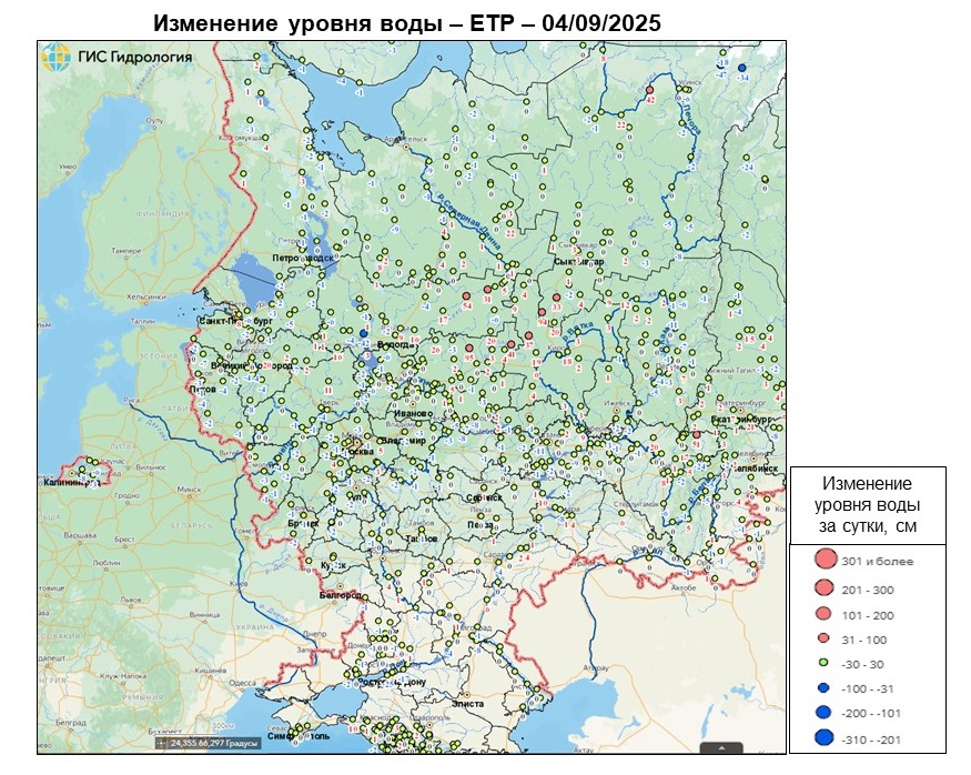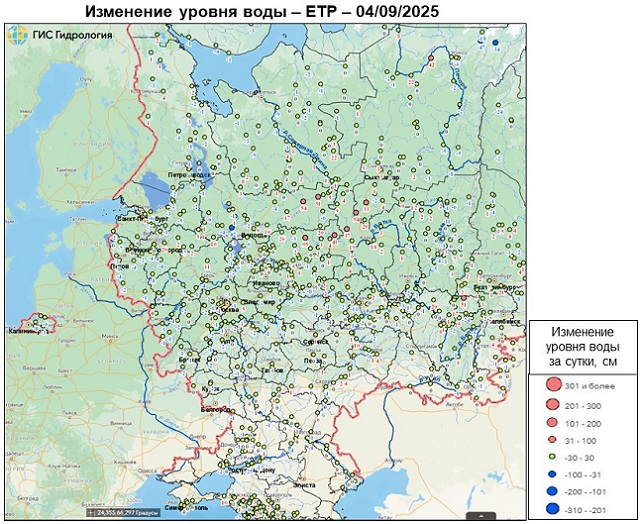 Дождевые паводки с ростом уровня воды (на 0,4-0,9 м) наблюдаются на реках севера Центрального, Приволжского, запада Северо-Западного, юго-запада и юго-востока Сибирского, юга и юго-востока Дальневосточного федеральных округов. Наиболее интенсивный подъём уровня воды (на 1,4 м) отмечается на р. Чарыш у свх Чарышский (Алтайский край) (Рисунок 1, 2).