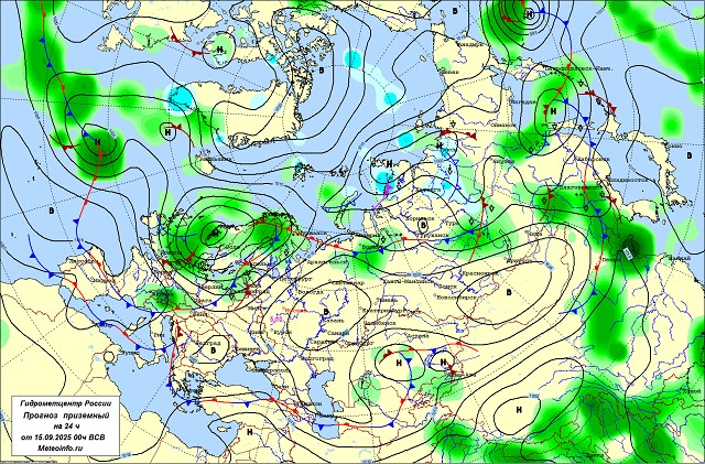 На большей части России расположились антициклоны, а основная циклоническая деятельность наблюдается на Дальнем Востоке, где через Хабаровский край, затем прибрежные районы и острова с юга на север курсируют циклоны с территории Китая...