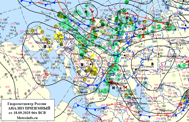 Ночью 18 сентября в Крыму сильный грозовой дождь вылил до 38 мм осадков, что привело к затоплению улиц и дорог; в Дагестане также отмечался сильный дождь с грозой, выпало до 19 мм влаги.