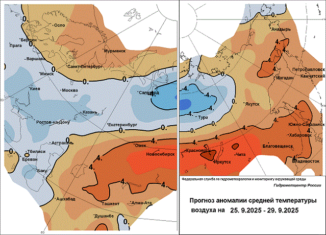 Высокая, местами чрезвычайная пожарная опасность 26-28 сентября в южной половине Центрального и Приволжского федеральных округов, на севере Южного федерального округа, в Донецкой и Луганской Народных Республиках, Омской, Новосибирской областях, на западе Алтайского края, в Бурятии, Забайкальском крае, на юге Иркутской области и Хабаровского края.