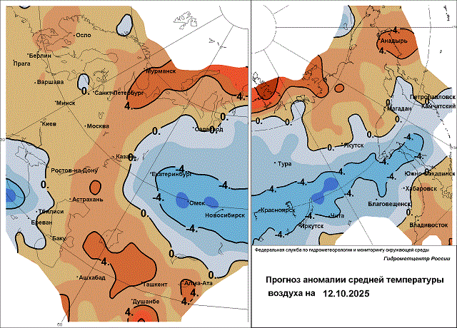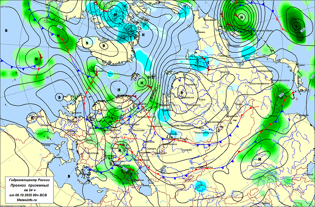 Зато циклон в акватории Охотского моря накануне разгулялся не на шутку. 8 октября на Сахалине штормовой ветер достигал 37 м/с, в центральных районах отмечались сильные смешанные осадки в виде снега, мокрого снега, дождя, снежной крупы, выпало до 49 мм влаги, зарегистрировано отложение мокрого снега с диаметром до 18 мм. 8 - ночью 9 октября на Курильских островах сильный дождь оставил до 48 мм влаги, ветер усиливался до 32 м/с. Сильные осадки (снег, мокрый снег, дождь, до 41 мм) наблюдались и на юге Камчатского края, ветер разгонялся до 36 м/с. Другой циклон принес осадки различной интенсивности на Чукотке, в Магаданской области, северо-востоке Якутии. 8- ночью 9 октября в Чукотском округе бушевала метель, ветер дул со скоростью 23 м/с.