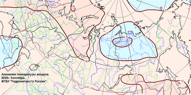 Аномалии температуры воздуха в России в сентябре 2025 г.