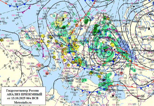 В понедельник, 13 октября, облачно, осадки, преимущественно в виде дождя, температура в Москве 4...6°, по области 2...7°. Ветер северо-западный 7-12 м/с.