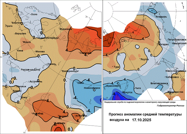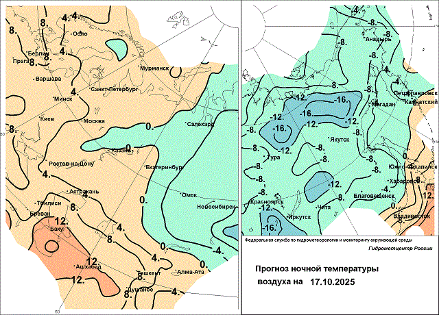 В южной половине Красноярского края, Хакасии, Иркутской области в предстоящие дни местами будет порошить небольшой снежок, вызванный атмосферными фронтами, а аномалия ночной температуры достигнет -10…-11 градусов. 17 октября преобладающая минимальная температура воздуха составит -7…-13 градусов, местами подморозит до -17 , в Тыве – до -20 градусов, в Иркутской области до -22 градусов. Температура воздуха в дневные часы 15-17 октября в большинстве районов составит -3…+2 градуса; в центральных районах 15 октября опустится до -5 градусов; в Хакасии и южных районах края 17 октября повысится до 0…+5 градусов; холоднее всего днём 15-17 октября в Иркутской области: 0…-5 градусов, в низких местах до -11 градусов.