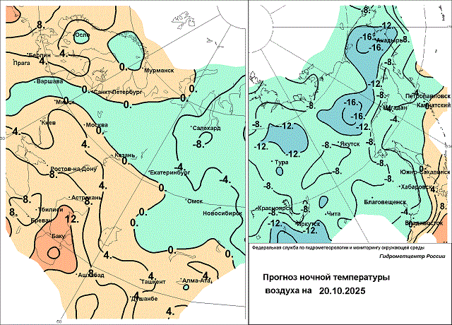 18 октября небольшие и умеренные осадки (мокрый снег, дождь) придут в Приморский край, а с ними гололёдные явления и ветер на побережье до 20 м/с. На севере Хабаровского края ожидается снег, мокрый снег, в Амурской области пройдут небольшие осадки. 19 октября небольшой снег сохранится в Приморье и Хабаровском крае, 20 октября осадки не планируются. В Приморском крае к 20 октября ночью воздух остудится до -6…-11 градусов, на побережье до 0…-5 градусов; на севере Амурской области морозы достигнут -8…-13 градусов, в горах Хабаровского края -13…-18 градусов. Днём наиболее холодно в Амурской области -2…+3, местами -3…-8 градусов, теплее всего в Приморье +2…+7 градусов.