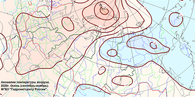 Аномалии температуры воздуха в России осенью (сентябрь-ноябрь) 2025 г.