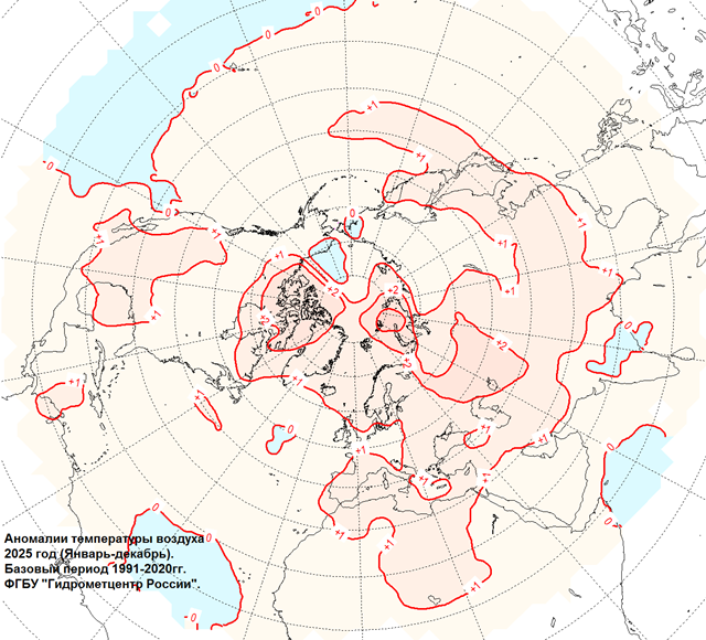 Прошедший 2025 год стал в России вторым самым теплым в истории регулярных метеорологических наблюдений в стране, т.е. с 1891 года. Еще теплее был только 2020 год, когда единственный раз средняя температура года превысила 0°.