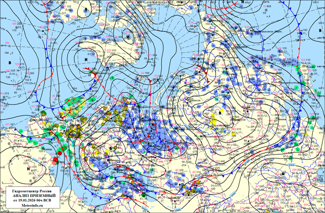 Атлантический циклон с севера европейской территории России (ЕТР) перемещается в юго-восточном направлении; под его влиянием, на большей части ЕТР и юго-западе Уральского региона пройдет снег, на Арктическом побережье местами метели при усилении ветра до 13-18 м/с. В начале периода в горных районах Кавказа и местами на Черноморском побережье, в зоне малоподвижного атмосферного фронта, ожидается снег, местами сильный, гололедные явления, на Черноморском побережье местами порывы ветра до 20-25 м/с.