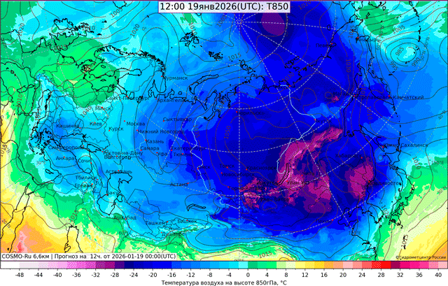 20-22 января. В Краснодарском крае ночью 20 января в районе Новороссийска, 21 января в горах, 22 января на востоке края ветер 20-25 м/с.  В центральных округах Красноярского края, Забайкальском крае сильный мороз (температура ночью до -45°). В Иркутской области сильный мороз (температура ночью -49…-47°, аномально холодная погода со среднесуточной температурой воздуха на 7-15° ниже климатической нормы. В Чукотском автономном округе снег, метель, на побережье Берингова моря ветер 25-30 м/с. В Бурятии 19-22 января аномально холодная погода, 20-22 января сильный мороз (температура ночью -49…-44°).