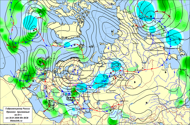 В связи с циклоном с центром в акватории Черного моря, образовавшимся в глубокой ложбине Средиземноморского вихря, на южные регионы Европейской России вновь надвигается непогода. Конец января в южных краях был теплым, температуры воздуха сохранялись положительными даже ночью, но холодный атмосферный фронт принесёт дожди, переходящие в мокрый снег и снегопады в горах, а также существенное понижение температуры воздуха…