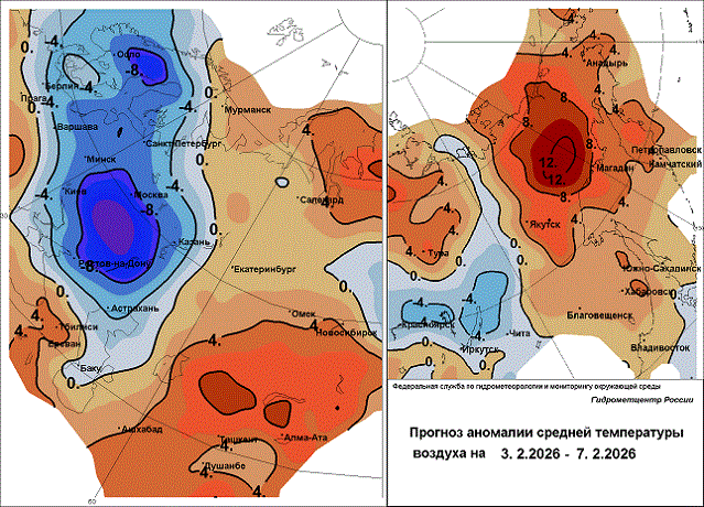 Во вторник, 3 февраля, ночью облачно с прояснениями, местами небольшой снег, в Москве -22...-20°, в центре города -20...-18°, по области -24...-19°, местами до -27°. Днем переменная облачность, преимущественно без осадков, в Москве -15...-13°, по области -18...-13°. Ветер западный 3-8 м/с. Гололедица.
