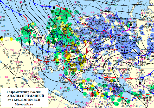 В среду, 11 февраля, облачно с прояснениями. Небольшой снег, местами умеренный. Tемпература в Москве -8...-6°, по области -11...-6°. Ветер юго-западный, южный 6-11 м/с. Гололедица.