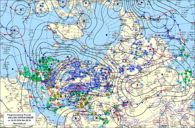 К юго-западным районам ЕТР приближается активный балканский циклон; под его влиянием, на юге ЕТР, а также на большей части Центрального региона ожидаются осадки, местами сильные, на юге Центрального региона местами очень сильные, в отдельных районах гололедные явления, местами ветер с порывами 13-18 м/с, на юге до 20-25 м/с, в горных районах Кавказа до 25-30 м/с, местами метели.