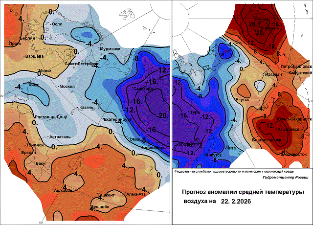 На севере Амурской области 20 февраля намечается сильный снег; 21 февраля небольшая передышка и преимущественно без осадков; 22 февраля снова нагрянут сильные осадки в виде мокрого снега и снега, с ветром 18-23 м/с, образуются гололедные явления. 20 февраля в дневные часы на юге области ожидаются около нулевые температуры -3…+2 градуса, на севере -небольшой морозец 0…-5 градусов. 22 февраля днём похолодает до -2…-7, на севере до -5…-10 градусов.