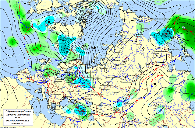 Накануне 26 февраля циклон и его атмосферные фронты определяли погоду в южных регионах Дальнего Востока. Небольшие и умеренные снегопады отмечались в Приморском и Хабаровском краях, Амурской и Еврейской автономной области. 26 – ночью 27 февраля сильный снег прошёл на севере Хабаровского края, выпало до 35 мм осадков…