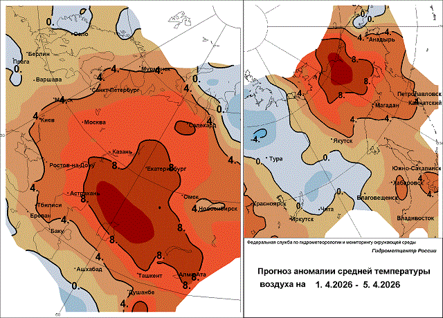 Температурный фон на Дальнем Востоке продолжает оставаться повышенным, опережая климатическую норму на 2-5 градусов, местами в Магаданской области аномалии средней суточной температуры воздуха составят +10…+11 градусов, на Чукотке + 9…+12, местами +13 градусов.