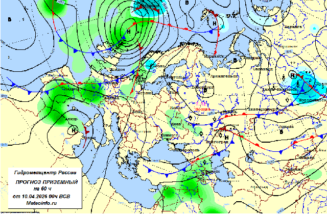 В минувшие сутки 9 - ночью 10 апреля отмечалась наиболее неблагоприятная погода. В ЦФО прошли небольшие и умеренные осадки в виде дождя, мокрого снега, снега. В Тамбовской области отмечались сильные осадки (дождь, мокрый снег, снег) зарегистрировано до 32 мм влаги. Местами образовался временный снежный покров, высота которого на юге Московской области (МС Кашира) составила 4 см, в столице на МС ВДНХ зарегистрировано 2 см снега. Сегодня днём вблизи центра циклона, расположившегося над центральными областями ЦФО, сохранятся небольшие и умеренные осадки в виде снега, мокрого снега и дождя. В отдельных районах образуется отложение мокрого снега на проводах и деревьях. Северный, северо-восточный ветер усилится до 13-18 м/с. В Воронежской области вероятна гроза. Преобладающая температура воздуха составит +2…+9 градусов. Местами возникнет гололедица.