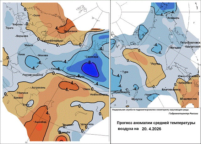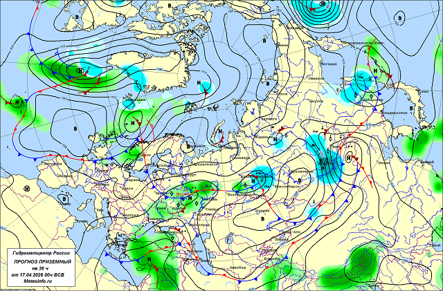 Сегодня 17 апреля в Ханты-Мансийском автономном округе идёт сильный снег, а Средний Урал будет находиться в теплом секторе циклона,  надвигающегося с северо-запада, и температура воздуха в дневные часы составит +12…+17 градусов. Но уже  в ночь на 18 апреля в связи с прохождением холодного фронта в регион придёт неустойчивая погода с осадками и похолоданием…