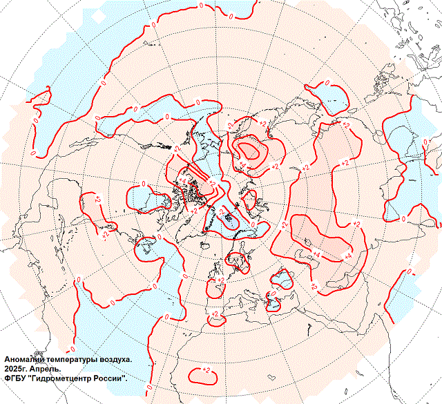Аномалия средней температуры воздуха на Северном полушарии в апреле 2025 года
